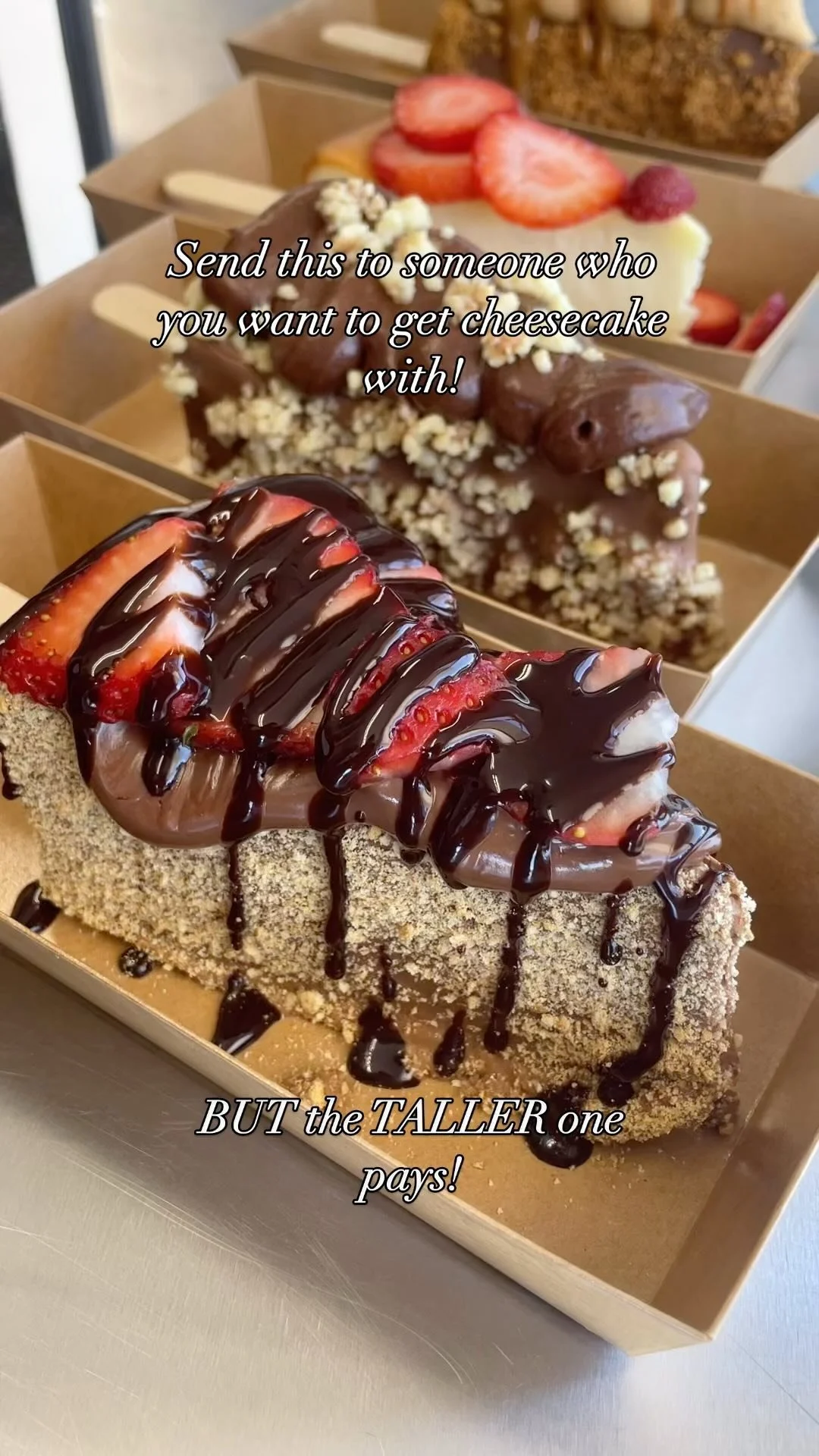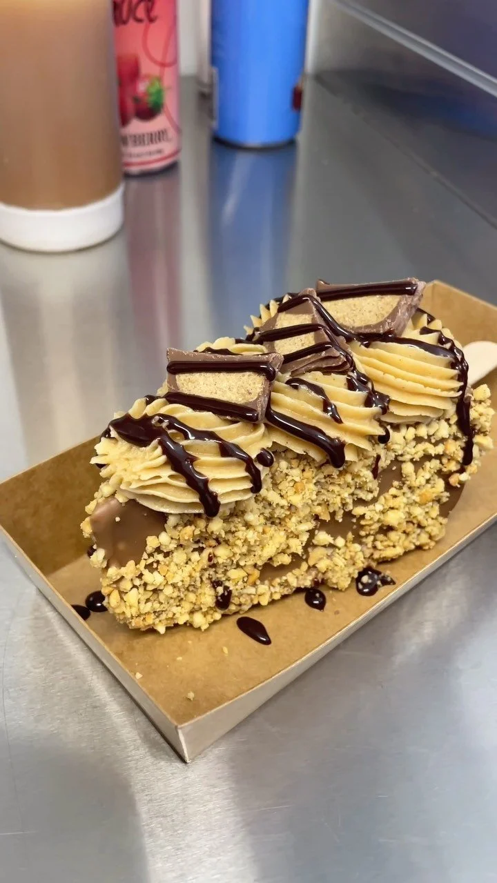 Indulge in our delectable chocolate-dipped cheesecake on a stick, rolled and adorned with an array of tempting toppings. Discover these irresistible desserts at our mobile dessert trailer. Stay updated on our upcoming locations, new flavor releases, and additional monthly specials by following us on our social media. Don’t miss out on our popular cheesecake brownies and cheesecake jars, with flavors changing weekly. Allow us to satisfy your sweet cravings wherever we roll next!